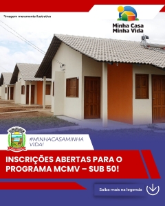 A Administração Municipal de Reserva do Iguaçu informa que, conforme o Edital nº 01/2025, estarão abertas as inscrições para o Programa MCMV – Sub 50, no período de 15 a 19 de dezembro.