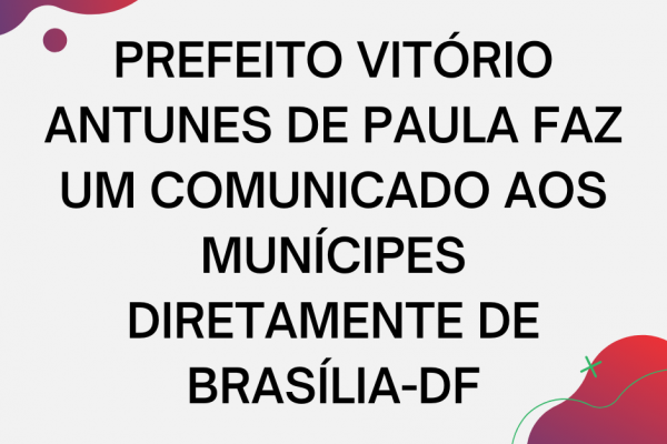PREFEITO VITÓRIO ANTUNES DE PAULA FAZ UM COMUNICADO AOS MUNÍCIPES DIRETAMENTE DE BRASÍLIA-DF
