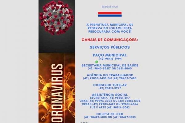 COVID-19 (Corona Vírus) A Prefeitura Municipal de Reserva do Iguaçu já está a par do assunto.
