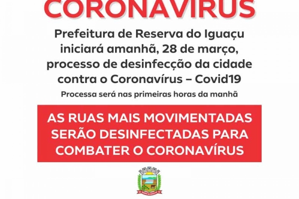 Prefeitura de Reserva do Iguaçu iniciará amanhã processo de desinfecção contra o CoronavírusHah