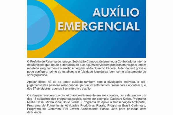 Prefeitura irá apurar servidores que receberam irregularmente o Auxílio Emergencial