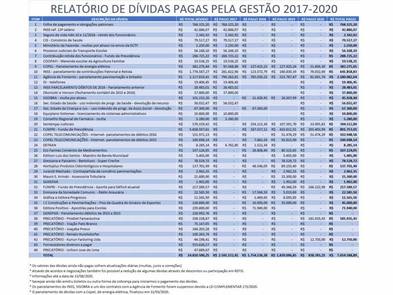 Detalhamos os valores pagos na tabela abaixo, e destacamos, que dos R$ 14.810.500,25 (quatorze milhões, oitocentos e dez mil, quinhentos reais e vinte e cinco centavos) apurados até o momento, ainda restam mais de 7 milhões de reais para pagar.