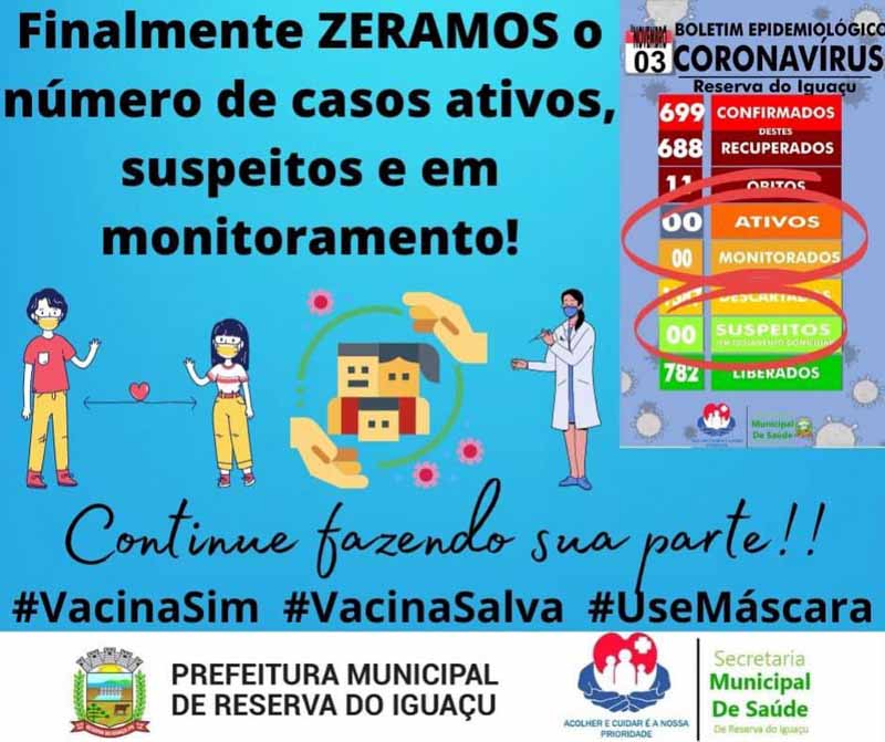 Finalmente ZERAMOS o número de casos ativos, suspeitos e em monitoramento!