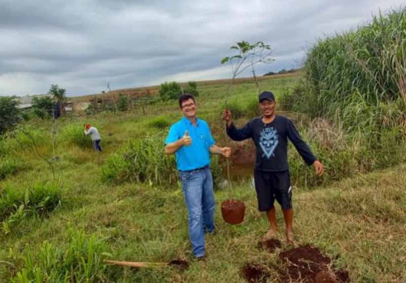 Na oportunidade, foram entregues 165 mudas de várias espécies para recuperação de três nascentes locais.