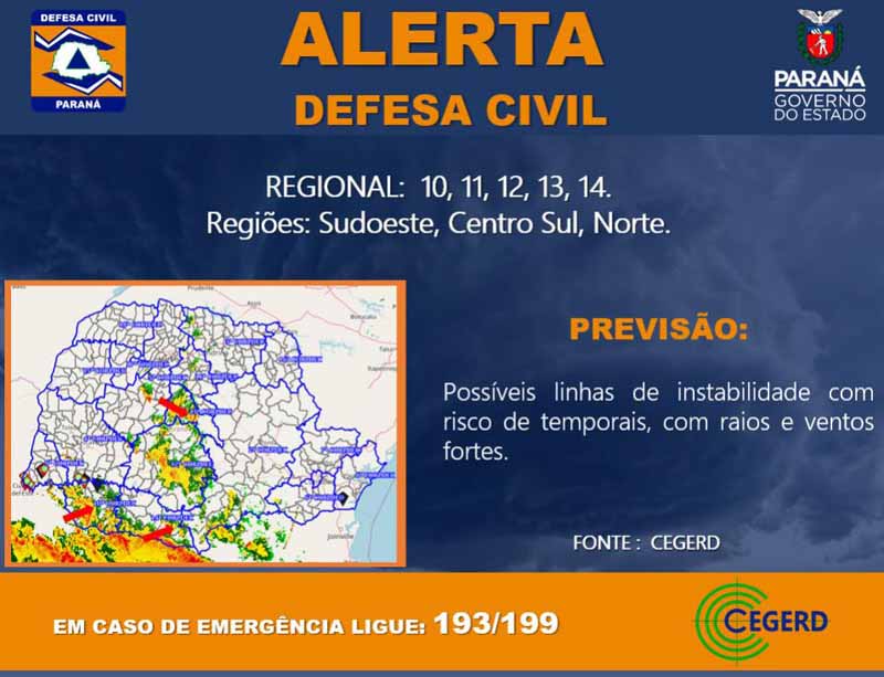 Recomendações: Ficar atento a possível evolução da situação na Coordenadoria Estadual da Defesa da Civil, bem como, nos possíveis alertas de evolução recebidos via SMS.