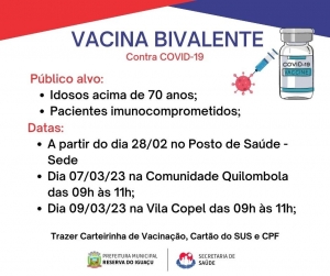 - Dia 07/03/23 na Comunidade Quilombola das 09h às 11h;
