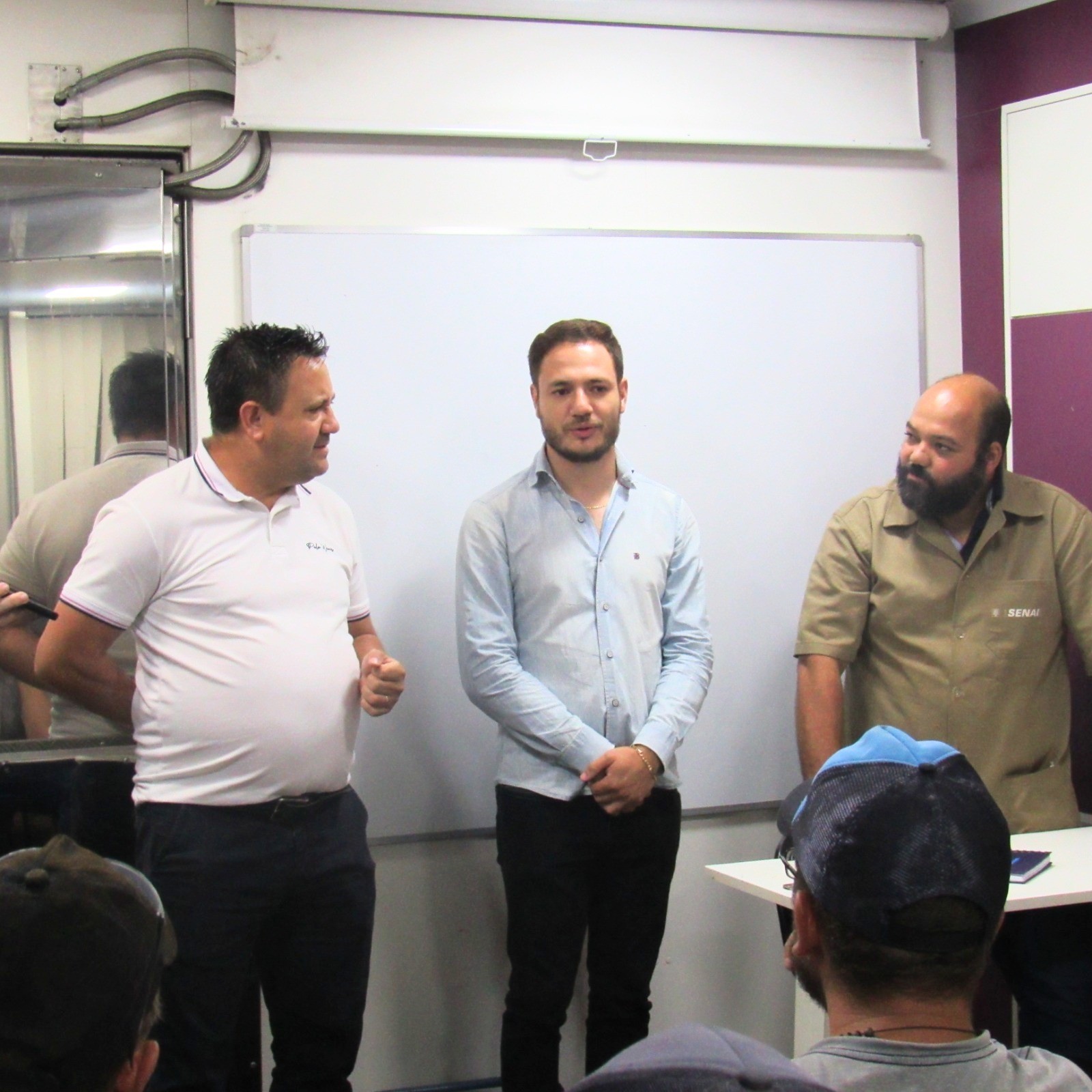 O curso foi ministrado pelo Professor do SENAI Antonio Sérgio Dias e teve por objetivo capacitar profissionais que atuam em processos de fabricação mecânica com uso de soldagem MIG/MAG.