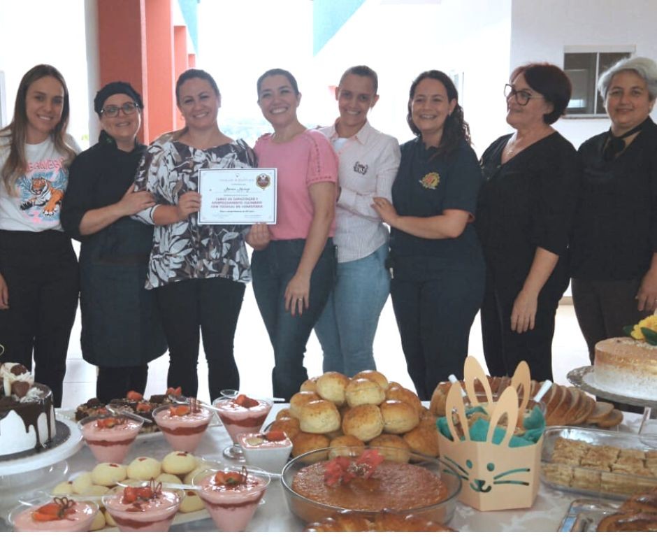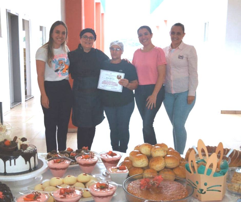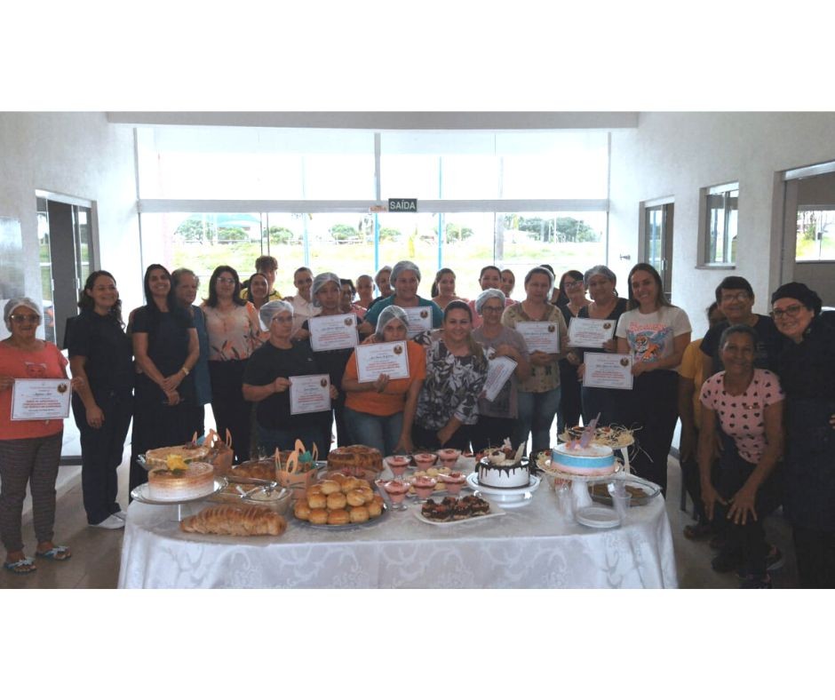 Durante 7 dias as merendeiras das Escolas e CMEIS da Secretaria de Educação, Esporte e Cultura realizaram a Capacitação e aperfeiçoamento culinário com técnicas em confeitaria, com carga horária de 30 horas.