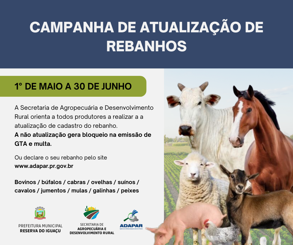 A Secretaria de Agropecuária e Desenvolvimento Rural orienta a todos produtores a realizar a a atualização de cadastro do rebanho entre os dias 1° de maio a 30 de junho.