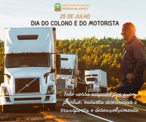 O COLONO, que escolheu como princípio de vida cultivar a terra para dali tirar o sustento de sua família e também os alimentos para toda a nação, trabalhando diuturnamente, e o MOTORISTA, que com dedicação, esforço, e muitas vezes até com grandes sacrifícios, transporta tudo o que é produzido pelas estradas de Sul a Norte do Brasil.