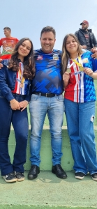 Nossas enxadristas recebendo o abraço do Prefeito Vitório pela conquista do 1° Lugar Geral Feminino por equipe no Xadrez.