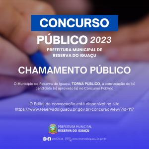 O Município de Reserva do Iguaçu, TORNA PÚBLICO, a convocação do (s) candidato (s) aprovado (s) no Concurso Público.