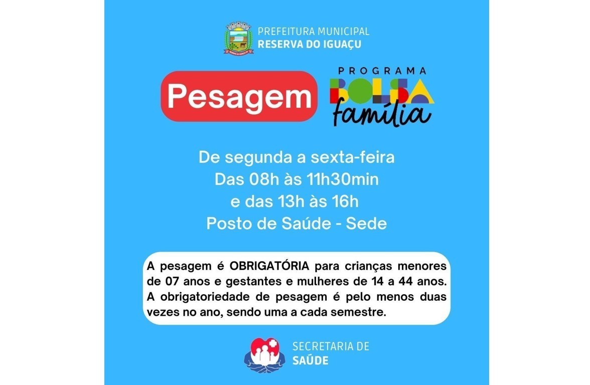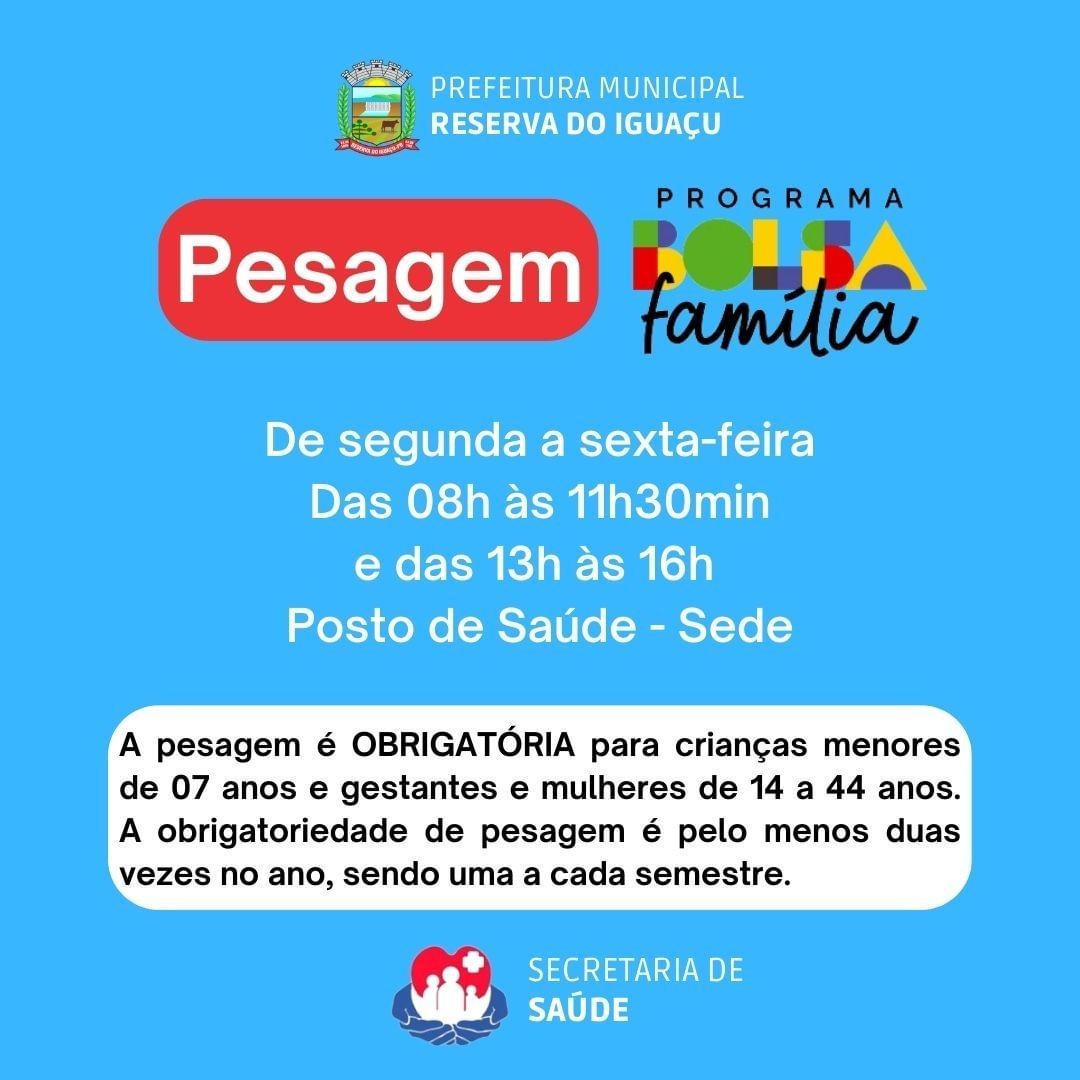 A Secretaria de Saúde lembra aos munícipes sobre a Pesagem do Bolsa Família.